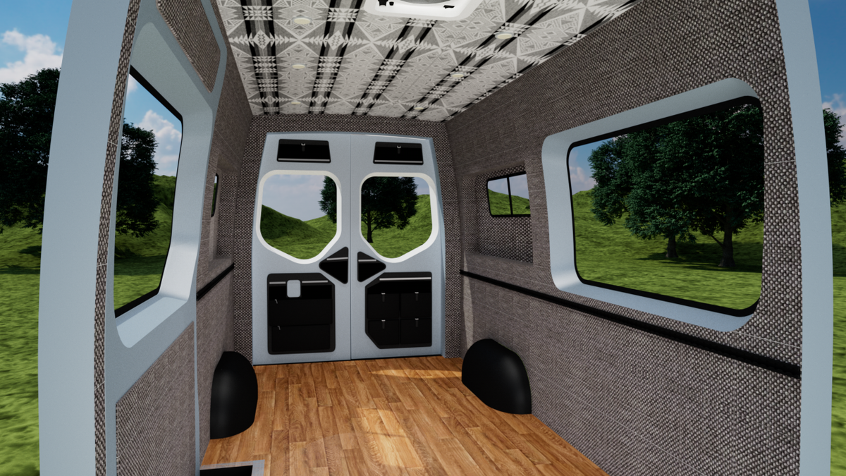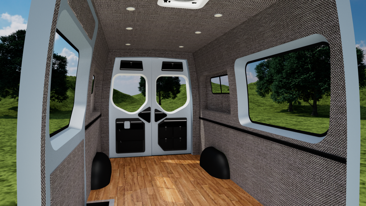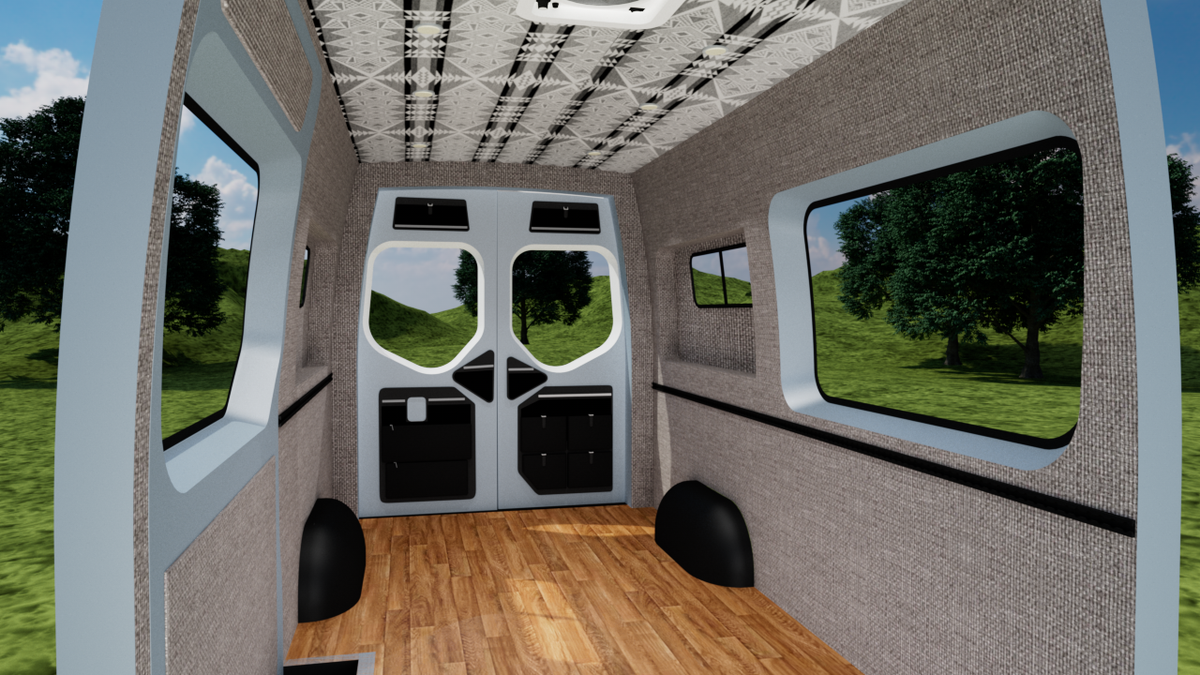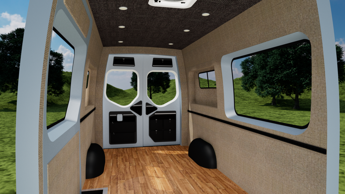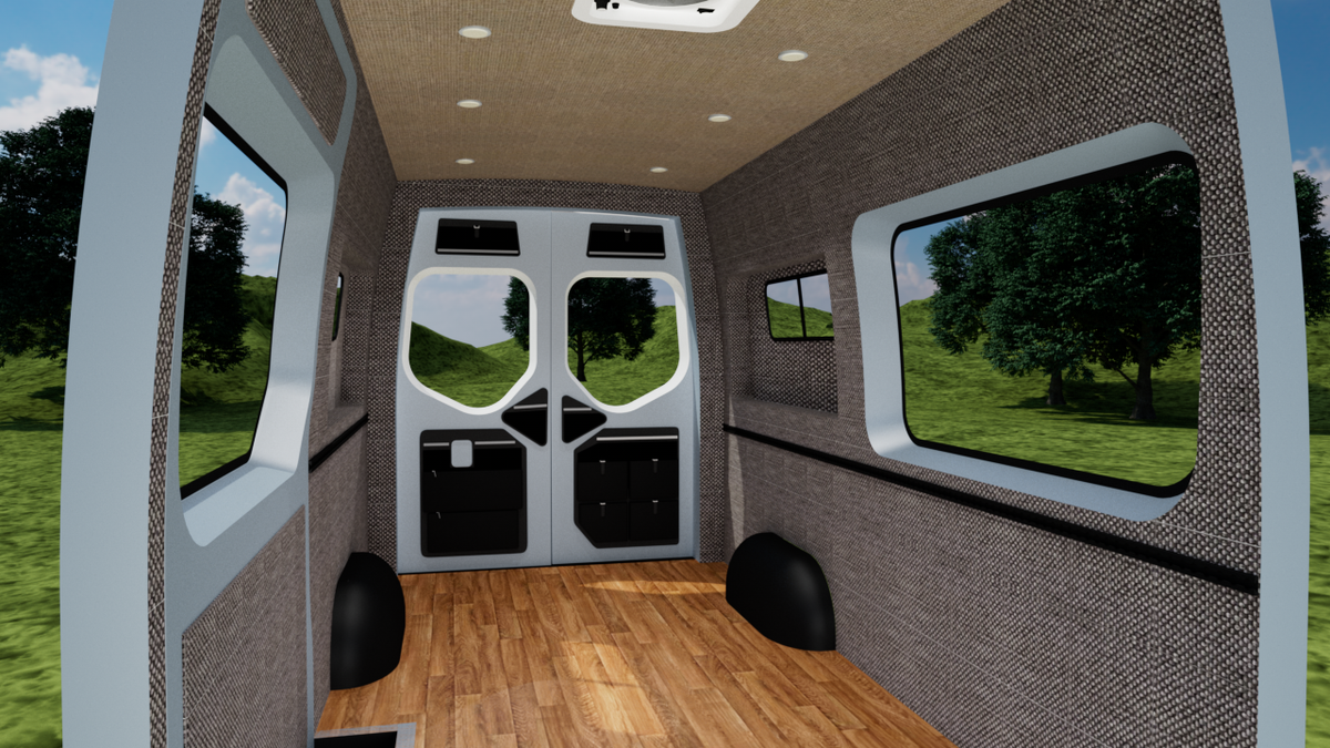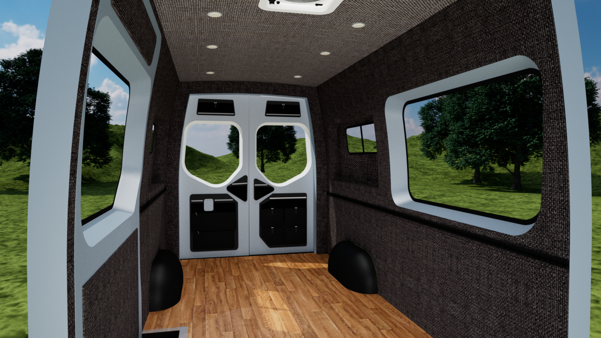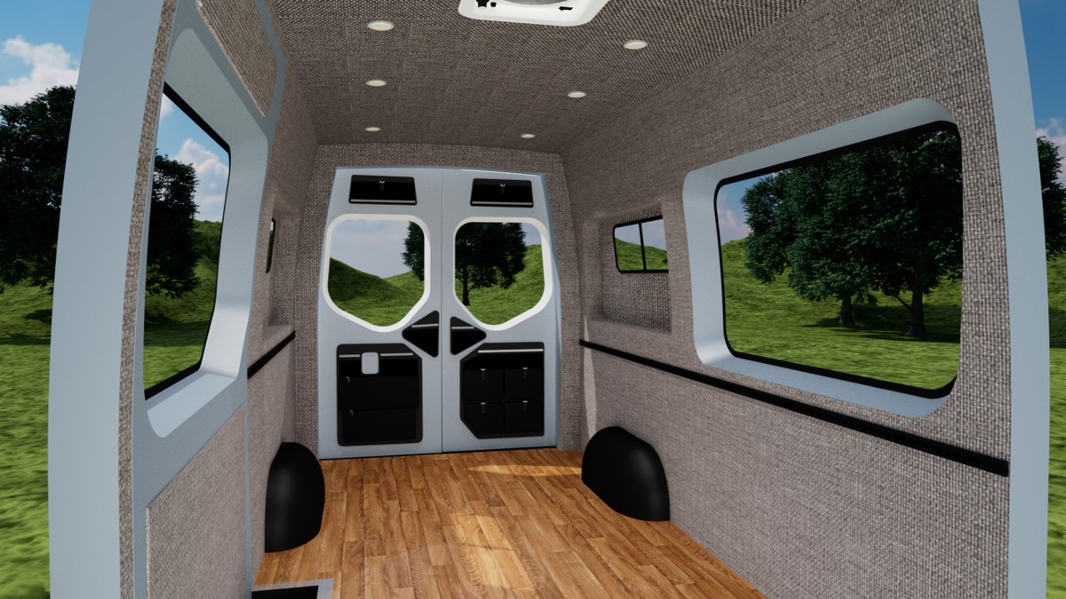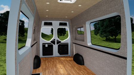 Our wall & ceiling panels are CNC cut and professionally upholstered. This interior panel kit is designed for a perfect fit and is bolted into the frame of your van using nearly all stock holes.